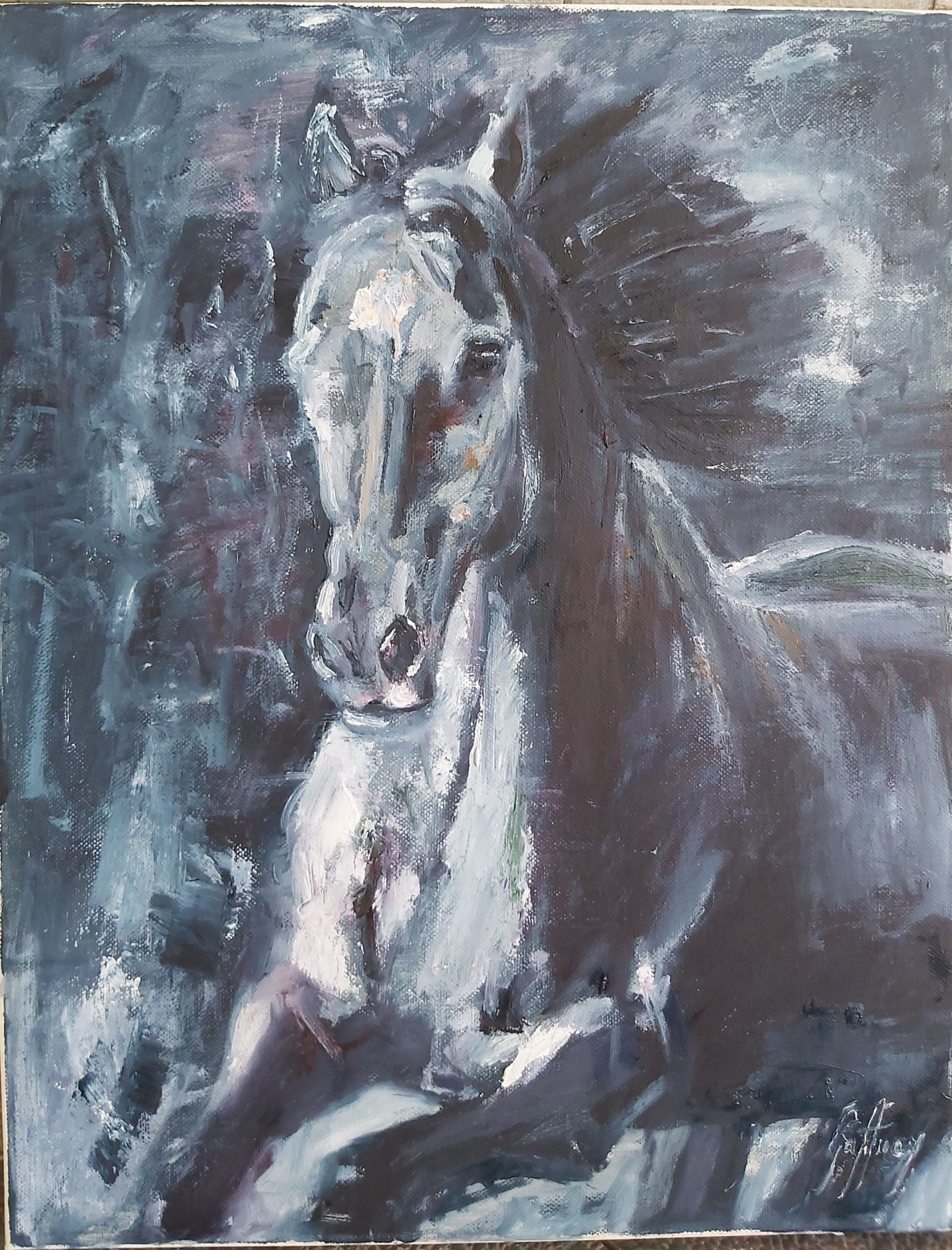 From my new “Farm” collection. This is a fine art Giclee print of my original oil on canvas painting “The Dark Horse”. This print can come framed in a handmade white wooden frame with a 3 inch mount and is numbered, named and signed.